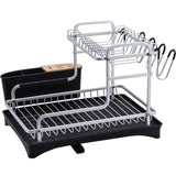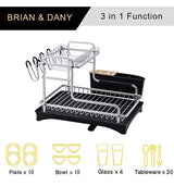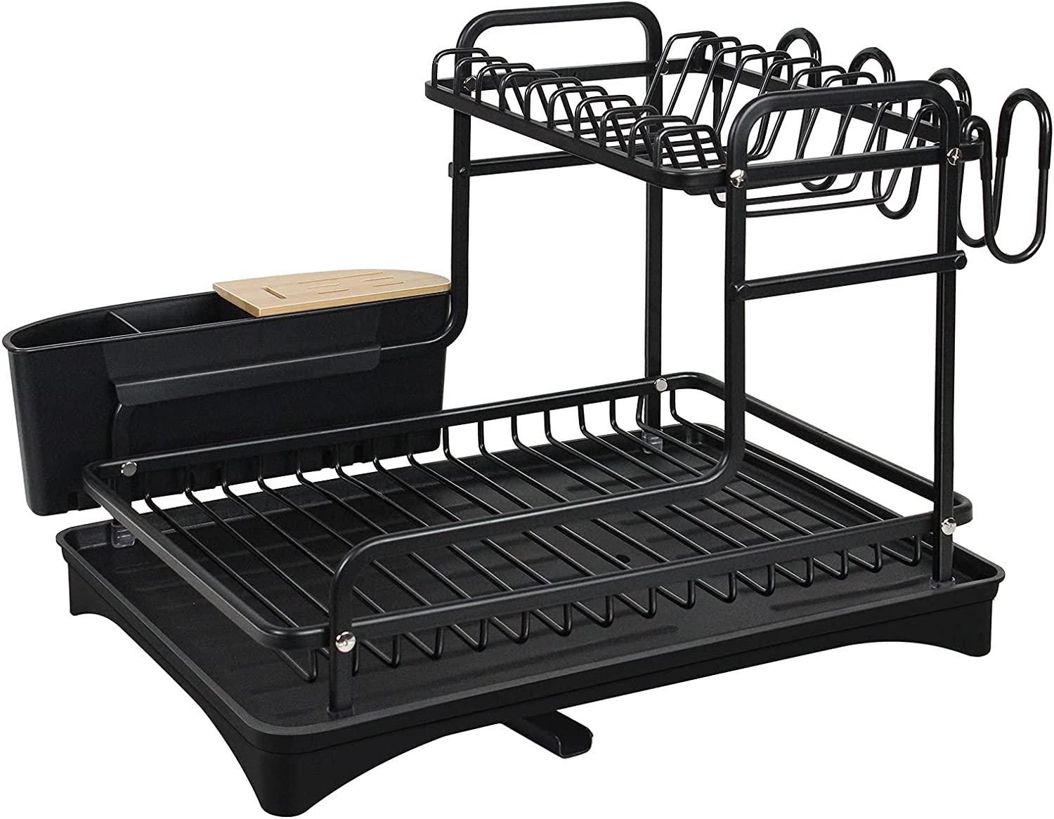 Aluminum Dish Drying Rack 2 Tire,Never Rust Dish Drainer with Removable Cutlery Holder & Cup Holder