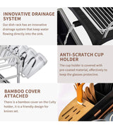 - LARGE CAPACITY: This unit size: is 41.9×29.9×26cm. Accompanied a 3-cell utensil holder with a wooden knife cover, a cup holder, dish drainer and cutlery holder. It can fit 10 dishes,4 cups, more than 10 bowls and 30 forks & knives.