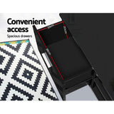 - ALUMINIUM HANDLES: The drawers feature aluminium handles that add a stylish accent to its black hues.