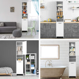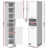Artiss Bathroom Cabinet Narrow Tall Cupboard Storage Tallboy for Dinning Room & Toilet Cabinets with Multiple Adjustable Shelves, Wall Mount & Free Standing, 30x30x185cm - White