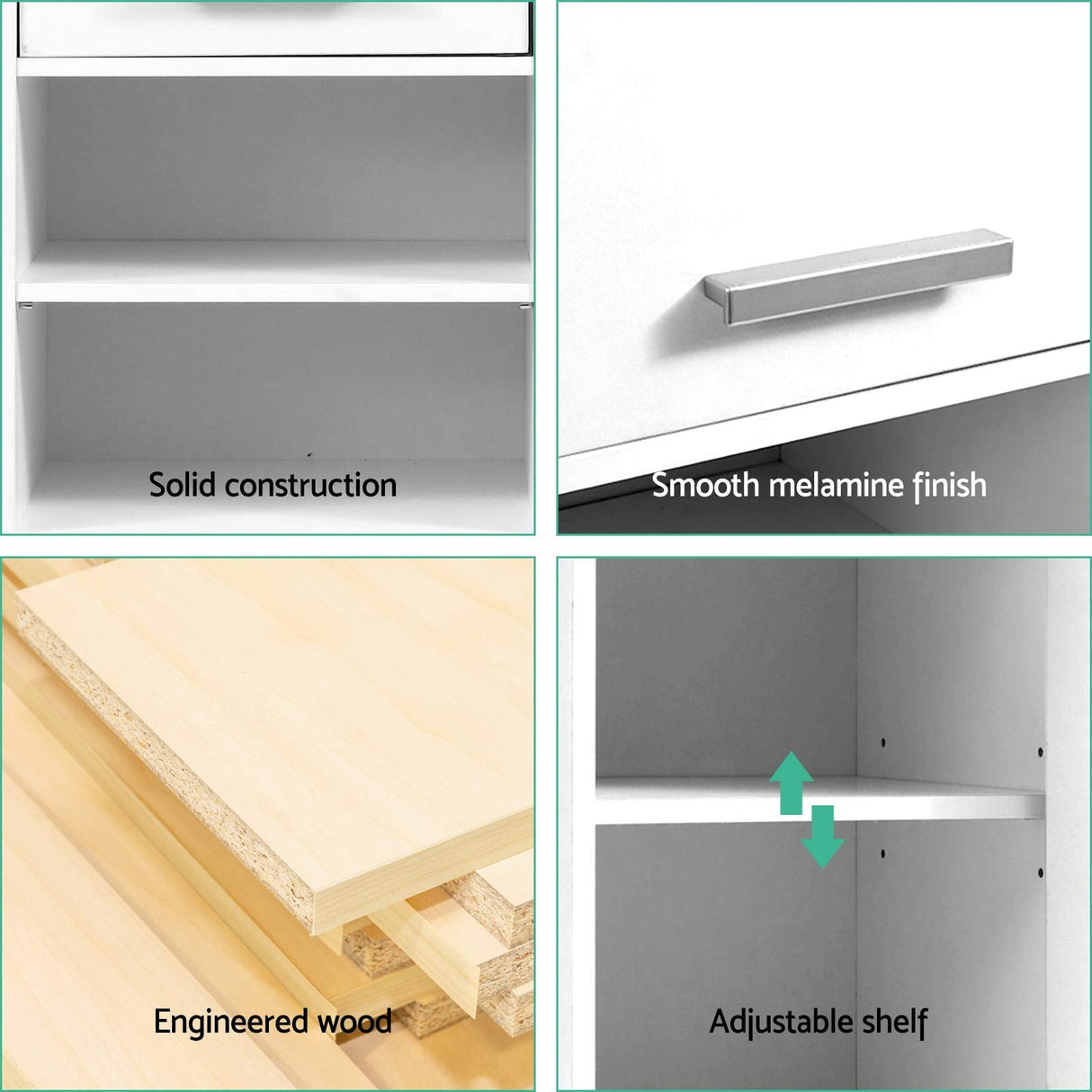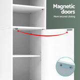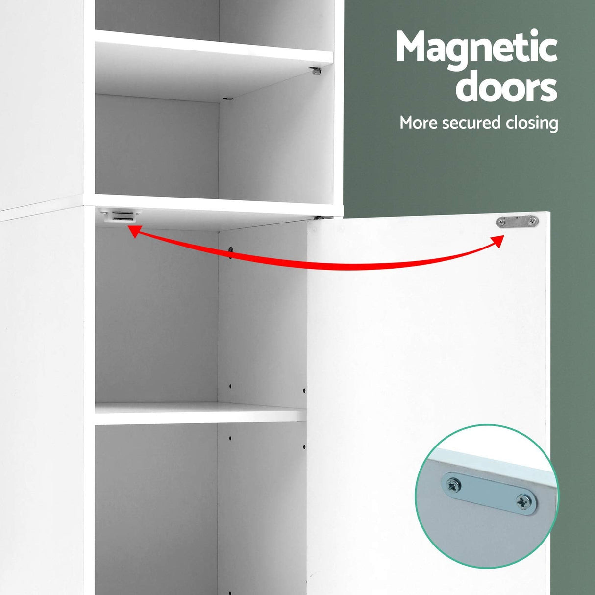 Need more storage but just do not have enough floor space in your home? Our Artiss Tall Cabinet may just be the solution for you. With other storage cabinets that are wider and shorter in shape, you use up more floor space and end up with a lot of wasted wall space that you cannot do much with except hang family photos. Our tall cabinet has a space-saving design, meaning it only uses up a tiny bit of floor space and can get into all the tricky nooks and crannies. Made of eco-friendly engineered wood with melamine finish, the cabinet features sturdy construction and eight tiers of storage. With two open shelves and two large closed cabinets with magnetic door catches, the cabinet provides more than ample space for all your bathroom or living room essentials despite its small footprint.