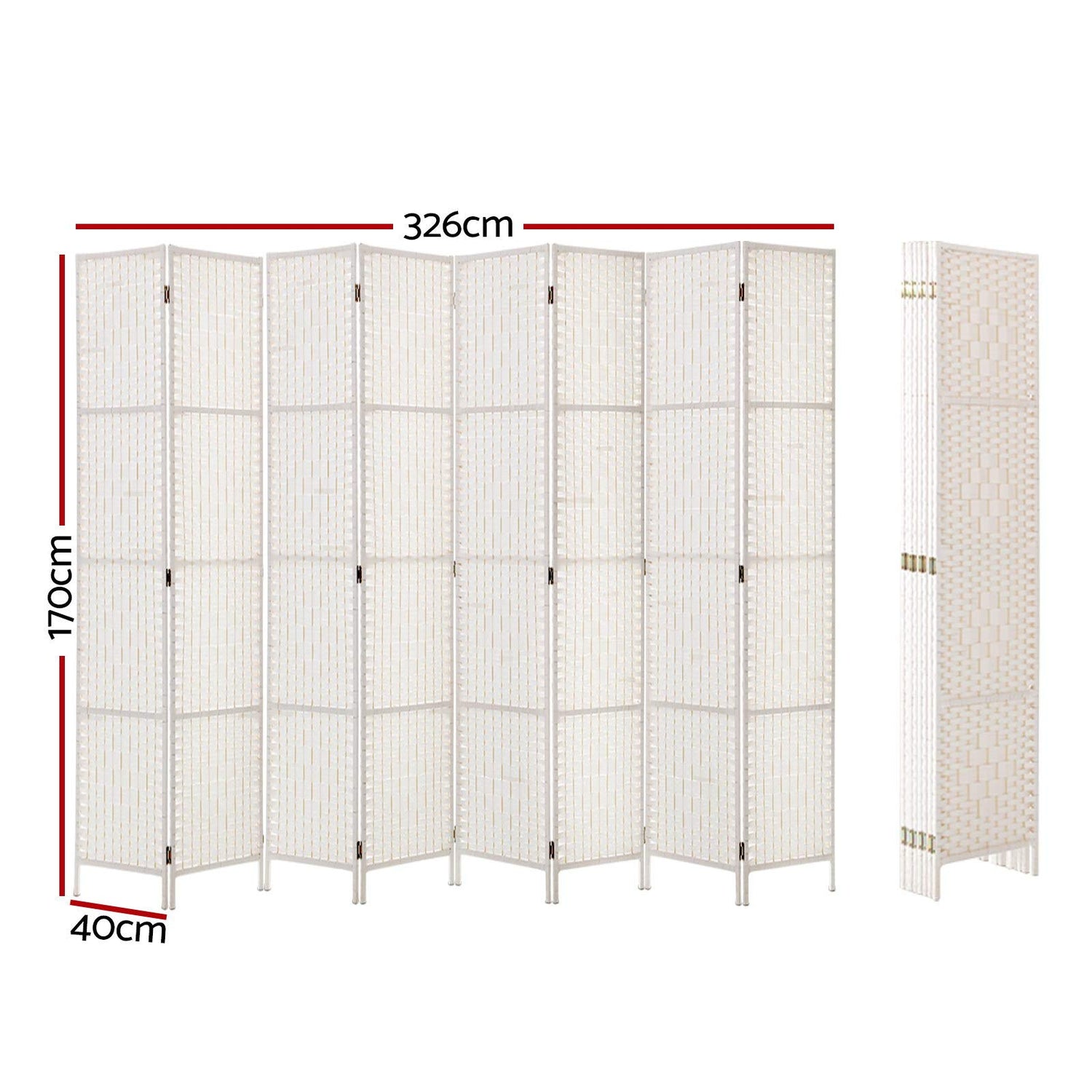 When you need instant private space, our 8-panel room divider helps create dedicated zones in the most hassle-free way. With its exotic and elegant design, our elegant panel divider certainly stands out from the looks of mundane dividers. Made from solid New Zealand wood, the divider is non-toxic, fade-resistant, waterproof and breathable. As for panels , they're beautifully crafted from rolled paper that mimics rattan look and feel. Lightweight and yet sturdy, our room divider utilises 2-way metal hinges to cope with robust use. Not least, the panels are also easily foldable for space saving storage.