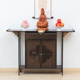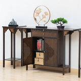 Bamboo Console Table Chinese Style Vintage Porch Table w/ Cabinet Hallway Table