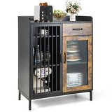 Bar Storage Cabinet Cupboard Kitchen Buffet Sideboard Metal Glass Doors Drawer