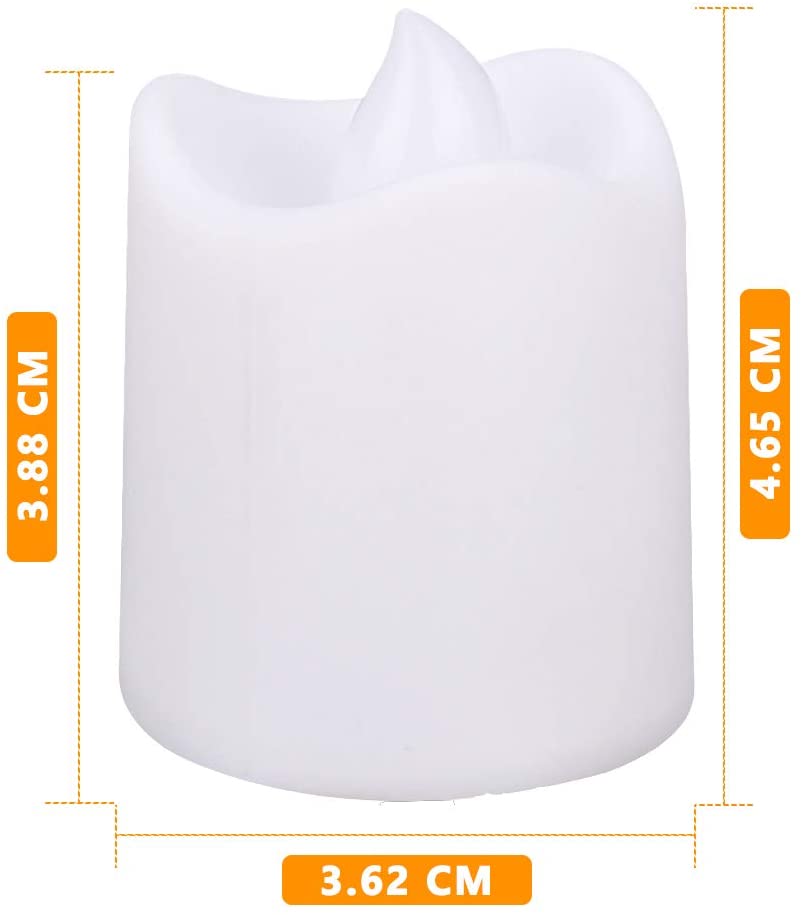 - EASY TO SET UP: With the size of 4.6 x 3.6 cm, a set of 24 LED tea lights can be your best helper when you need it. ON/OFF switch at the bottom for easy operation. The fake candles with batteries have 100+ hours of service time and can be replaced via the tab at the bottom.