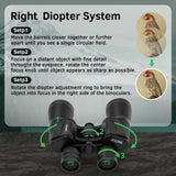 - Solid & Waterproof: The binoculars have rugged construction with shock-resistance rubber armor and grip design ergonomic which not only makes it anti-slip on the surface but also a comfortable grip. Made of O-Ring sealed and nitrogen purged which prevents damage from debris, dust, and moisture, the anti-fog lens barrel is filled with nitrogen to prevent internal atomization.