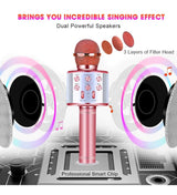 BlueFire Wireless 4 in 1 Bluetooth Karaoke Microphone with LED Lights, Portable Microphone for Kids, Best Gifts Toys for 4 6 8 10 12 Year Old Girls Boys