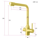 Brushed Gold 3 Way Kitchen Mixer Pure Drinking Water Sink Tap Swivel Spout WELS