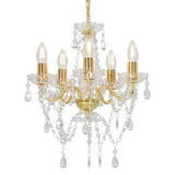 Featuring an extravagant and fancy design, this chandelier with crystal and glittering beads will surely make a bold visual statement and be an eye-catcher in your home interior! The transparent droplets and 5-arm frame bring an elegant charm ensure optimal illumination. You can choose and install E14 bulbs with various light colours, creating an atmosphere of relaxation and restfulness. Please note the bulbs are not included. With mounting materials included, you can assemble and install the hanging lamp easily and securely.