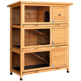 - Spacious Three Levels: Our Kaveno Pet Hutch offers three levels of comfortable living space for your beloved pets. With foldable built-in ramps between levels, your furry friends can easily move up and down. You can even close off the ramps to keep each level separated when needed.