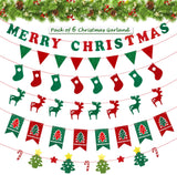- Pack of 6 Bunting Banner: Designed in classic Christmas colors - 1 x Merry Christmas Letters; 1 x Christmas Elk; 1 x Christmas Triangle Flag; 1 x Christmas Tree Flag; 1 x Christmas Stocking; 1 x Cute Christmas Tree & Christmas Cane.