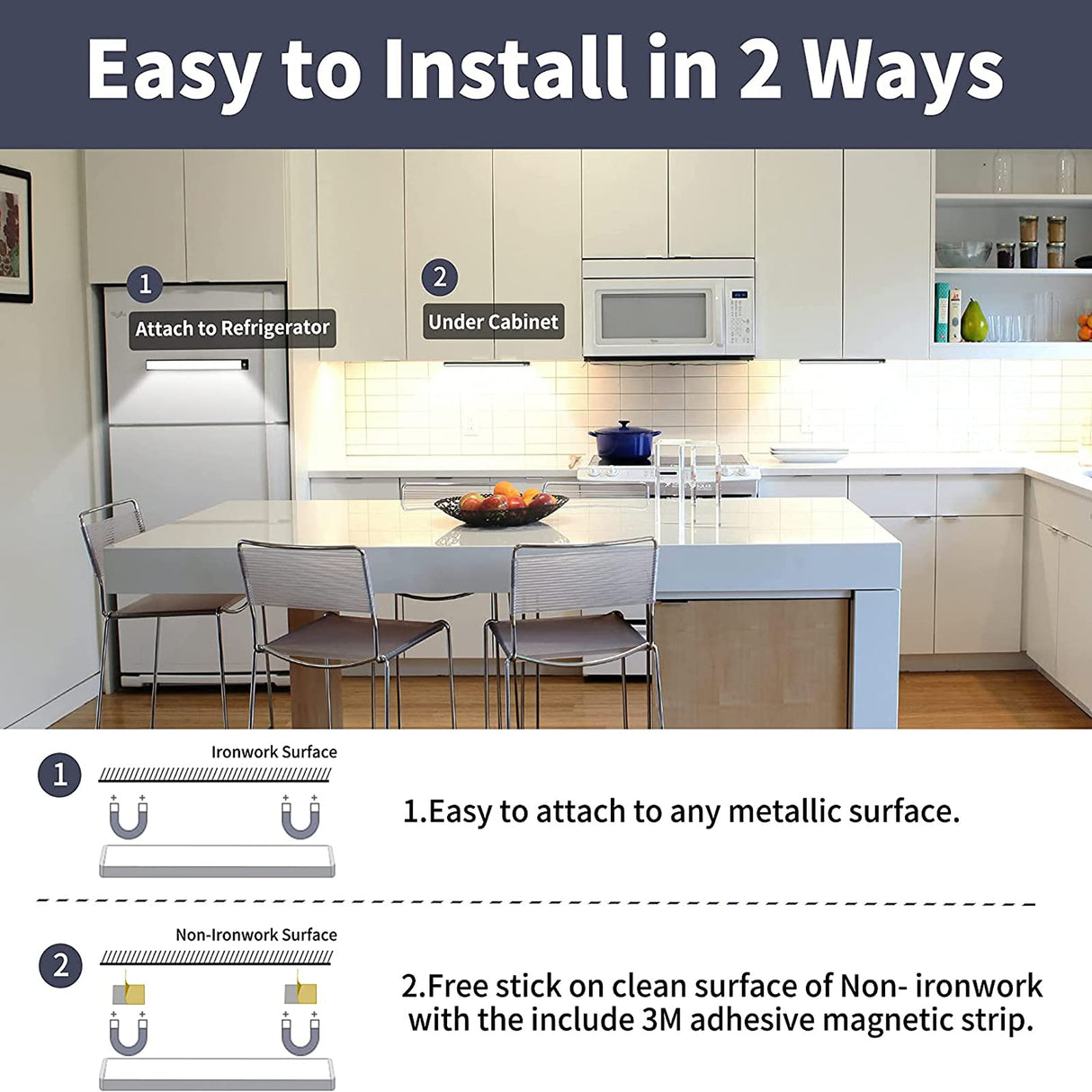- Easy to Install: It has a built-in magnet that can be absorbed on any surface made of iron and can be easily installed, No wiring required. The closet light use the attached 3M magnetic stripe to paste it wherever necessary, it's undetectable