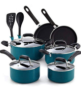 Cook N Home 02588 12-Piece Stay Cool Handle, Turquoise Nonstick Cookware Set