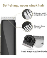 - Upgraded Sharp and Safe Blade: The beard trimmer blade can make smooth and excellent cutting performance without any pulling or sticking hair. The R-type acute angle is polished and round, it will not hurt your skin. Besides, we offer a spare waterproof cutter head. it's convenient for you to replace, and ensures long-lasting enjoyment of your purchase.