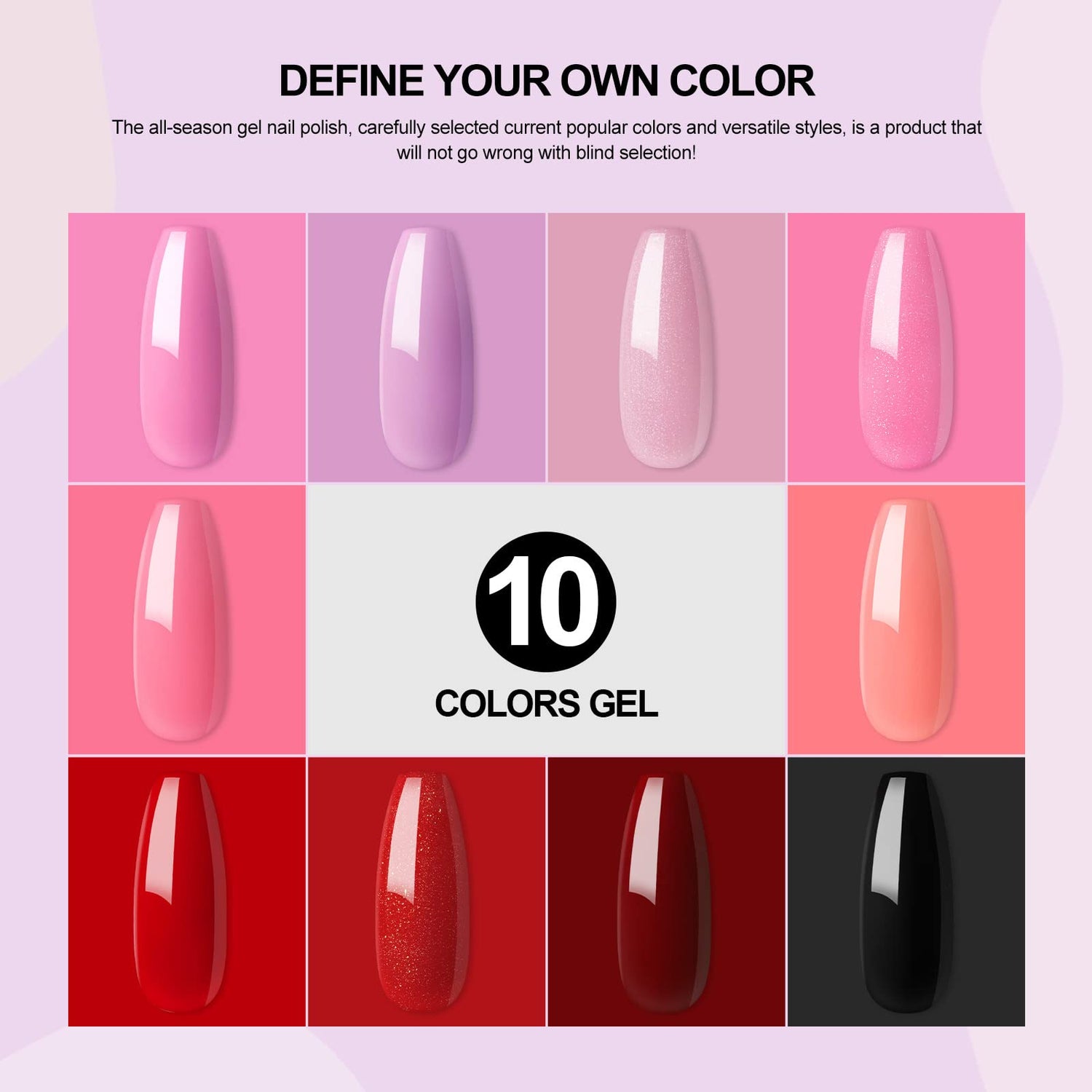 - Premium Quality and Long-Lasting Gel: Our gel nail polish is made from non-toxic and harmless ingredients, low smell, color resistant, and shiny resistant. It also has a high-gloss wear and mirror shine finish, with no chips or smudges. The smooth brush makes it easy to apply, it is not peeling off easily and can last to 3+ weeks with proper application.