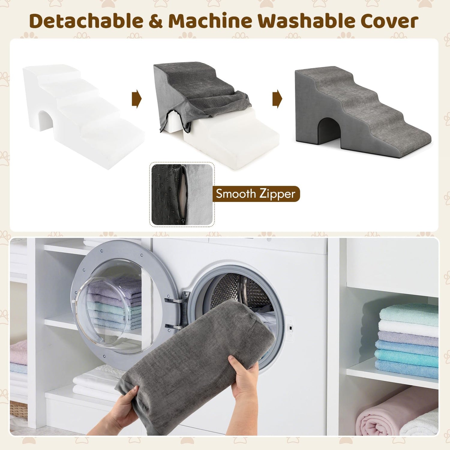 - Comfortable & Washable Cover: The cover of the foam pet stairs is crafted from soft chenille yarn, offering a cozy surface for pets to step on. Meanwhile, the selected material can withstand the scratching of pets' sharp claws. Besides, the zipper cover is easy to remove and machine washable for convenient care.