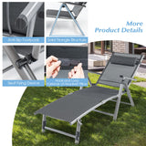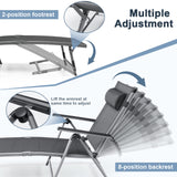 Patio Lounge Chair, Rustproof Aluminum Chaise Lounge Chair with 8-Position Adjustable Backrest, 2-postion Footrest, Comfortable Headrest, Outdoor Folding Reclining Chair for Outside