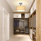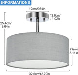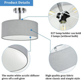 Modern Semi Flush Ceiling Light Fixture, 3-Light Fabric Ceiling Drum Lights for Bedroom, E27 Entry Light Fixtures Ceiling Hanging for Dining Room Kitchen Hallway Foyer Living Room, Grey Finish