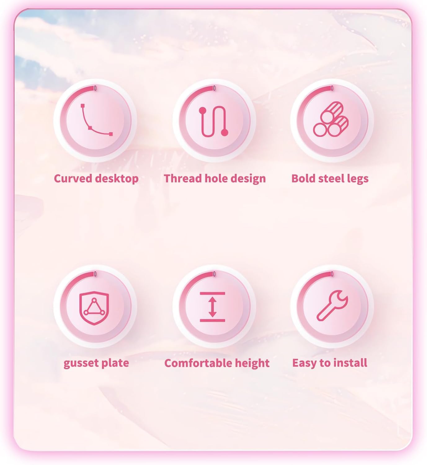 - CONVENIENT & ERGONOMIC DESIGN: Our gaming desk is moderate in height and its edge is designed with ergonomic curve, which gets rid of uncomfortable feeling from leaning on table for long time. In addition, it is equipped with two cable management grommets to keep the cluttered cables in order.