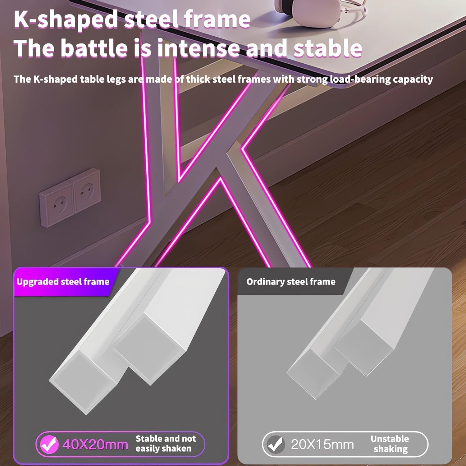 - MULTI-PURPOSE& EASY TO ASSEMBLE: Our gaming desk serves multiple roles, not just for gaming but as an ergonomic office or writing desk. It fits seamlessly in various settings like your home, office, dorm room, or bedroom. Assembly is a breeze with included tools, instructions, and an allen key. You'll have it ready to use in just 10-20 minutes.