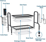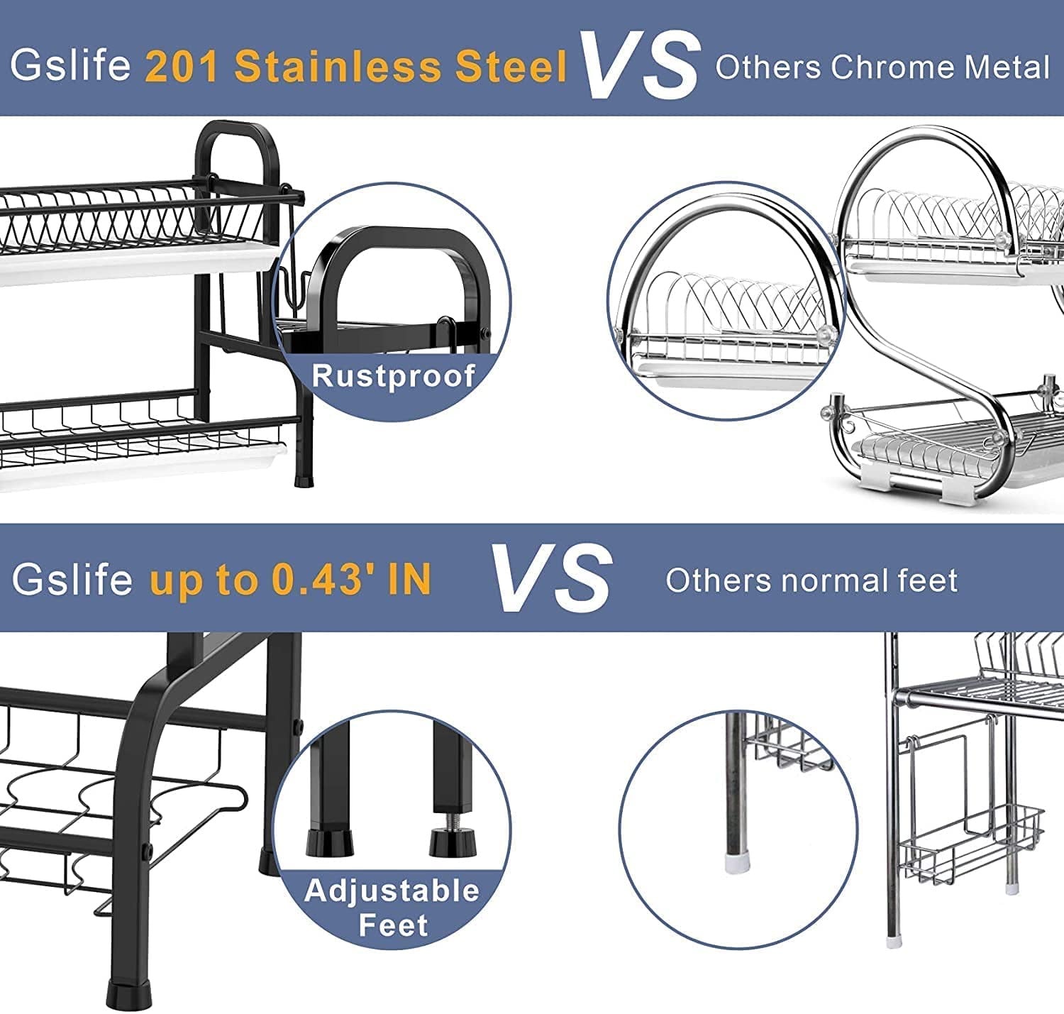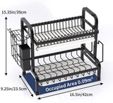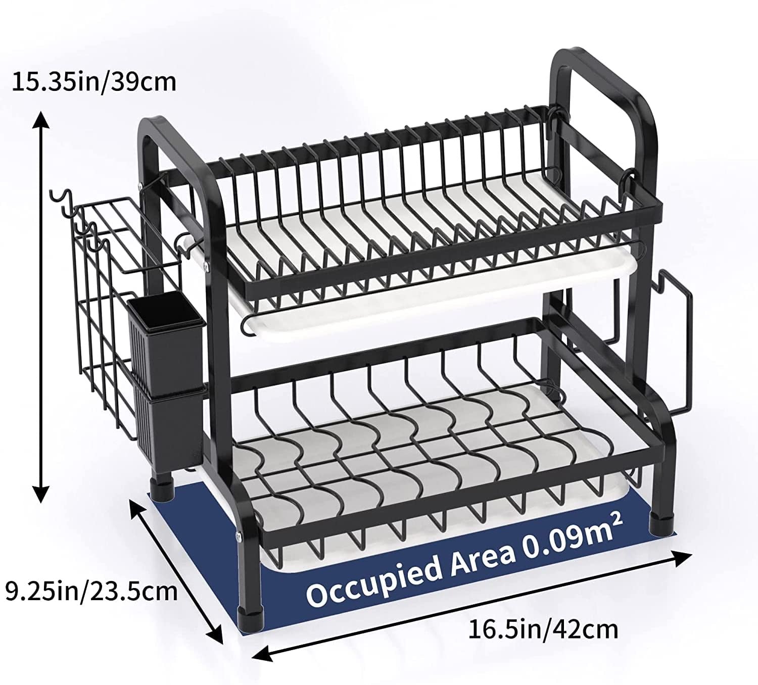 Dish Drying Rack, 2 Tier Stainless Steel Length Kitchen Dish Rack, Dish Rack Drainer for Kitchen Organizer, Kitchen Storage Counter Organization, Storage Space Saver (Black B)