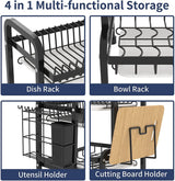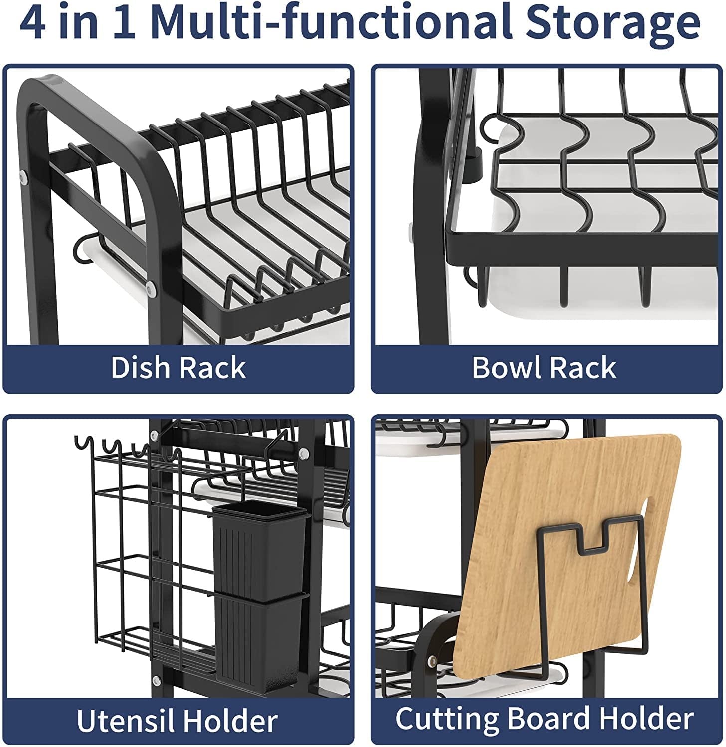 - All-In-One Kitchen Organizer: This sink organizer will keep all the cooking utensils and cups tidy, dry clean easily. The dish drainers for kitchen counter can store various sizes of utensils, including Plate, Cleaning supplies, Fruit, Silverware,Chopping Board and etc.