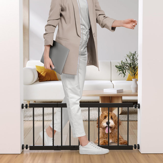 - Upgrade All Steel Frame: Our puppy gate is made of a high-quality thickened metal frame structure for more sturdy and durable, stable load-bearing, and less prone to deformation compared to the plastic dog gate, a dog will not knock it down.