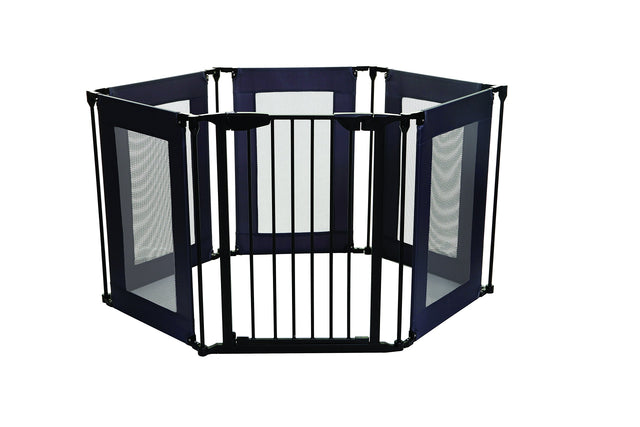 Dreambaby Brooklyn Converta 3-in-1 Play-Pen Baby Safety Gate - with 6 Configurable Mesh Sides Panels - Fireguard & Room Divider - Fits Opening up to 3.8m Wide & 74cm Tall - Black - Model F2031BB