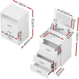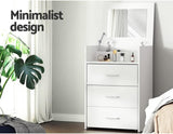 With a combination of unique structural design, chic aesthetic, and maximum style, the Artiss 2-in-1 bedside dressing table is sure to make a statement with a clean aesthetic and contemporary style that will blend with your existing decor. It comes with a hidden mirror and a soft padded stool with rotatable wheels, flaunting a clever and timeless design that caters to the bedroom of all sizes. This minimalist style furniture boasts a practical design that allows ease of use and convenience. The smooth-sliding three spacious drawers and a divided storage compartment enable you to store your belongings neatly and elegantly. It makes a perfect storage solution, where you can also put your most-loved collection of jewellery for display. A high-gloss finish on the front offers an attractive sheen for a fresh, clean look. And with particle board construction, your bedside dressing table will withstand the test of time. Not least, its sleek handles exude a contemporary vibe that stands out from the mundane.