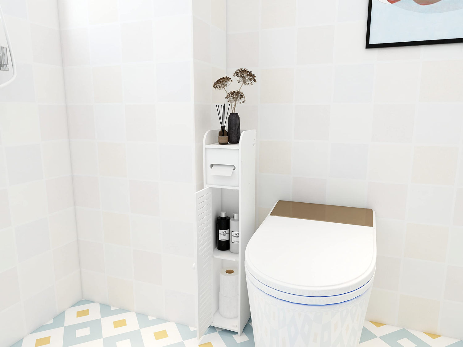 - A Neater Bathroom: Perfect for storing excess toilet rolls and toiletries neatly in your compact toilet.