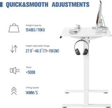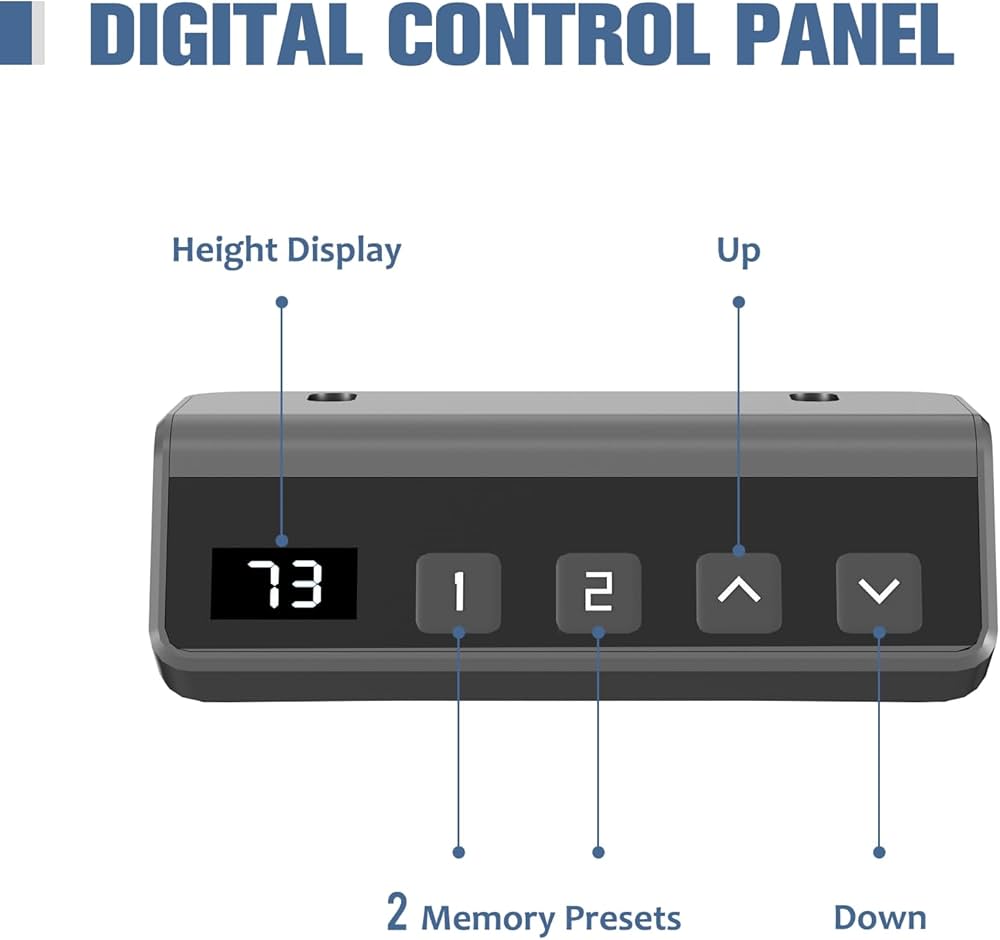 - SOLID CONSTRUCTION: The height-adjustable desk is made of heavy-duty steel, with a weight capacity of 70KG(154.3lbs) and travel speed of 14mm(0.55")per second, keeps the desk stable even when it rises to the highest point. The soft start/stop functions make the desk move smoothly and quietly (<50dB).