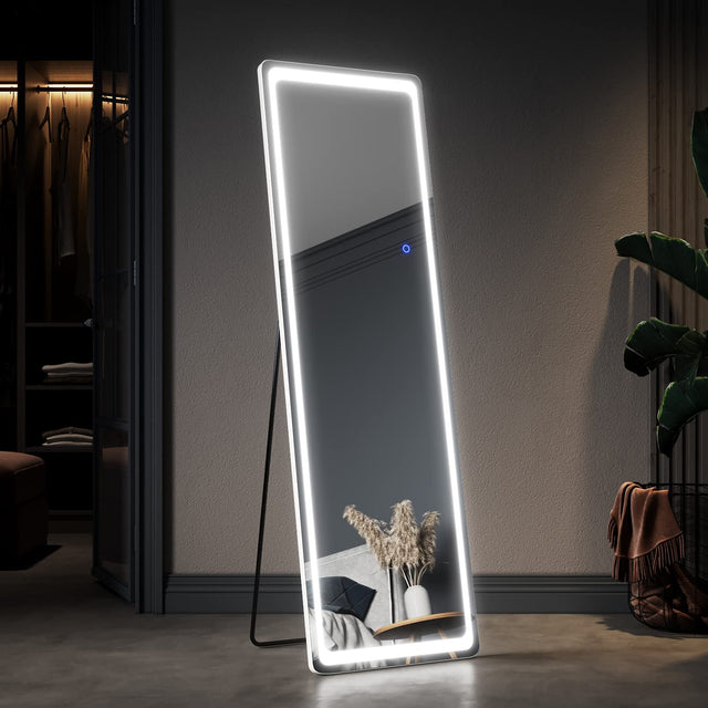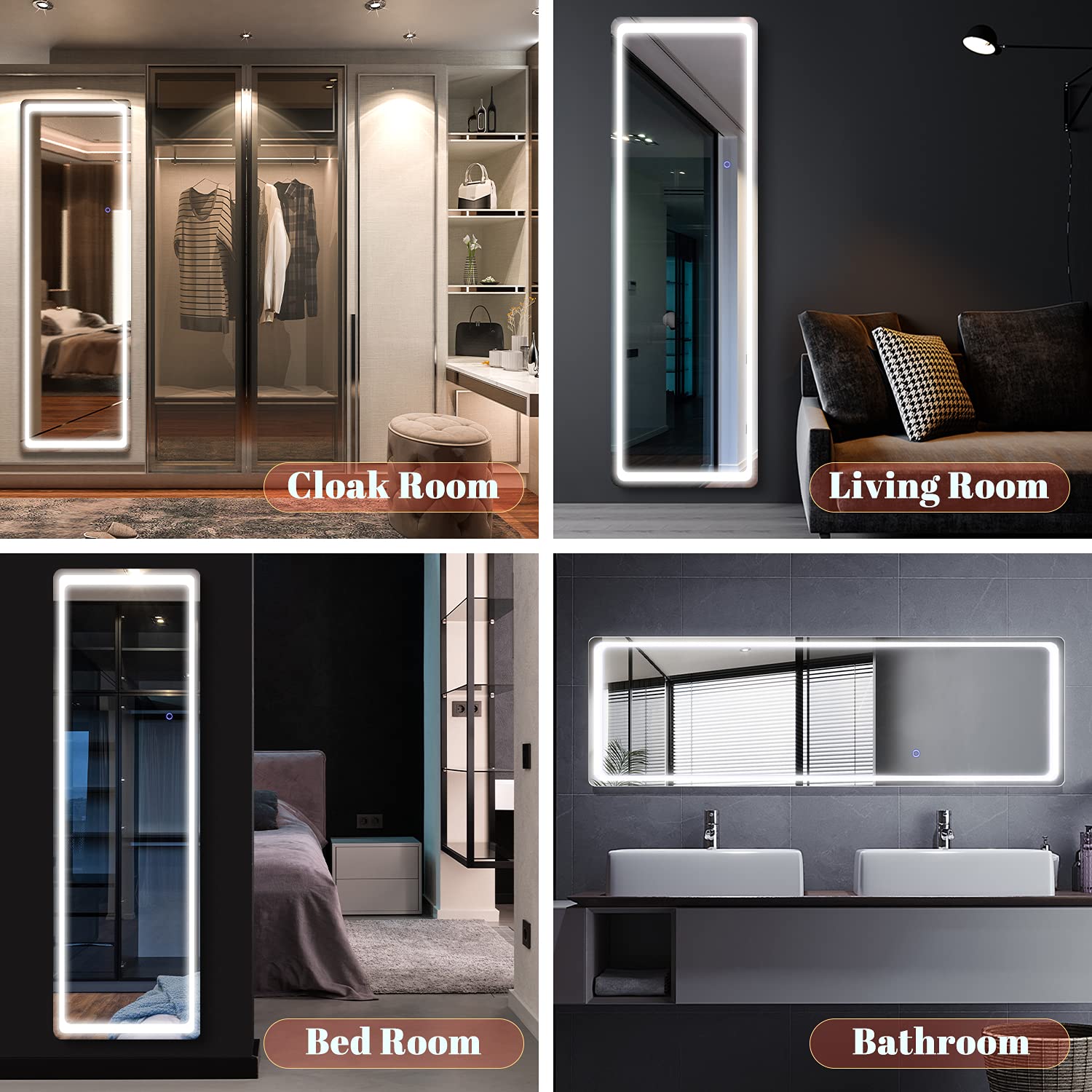 LED Floor Mirror, Wall Mounted Hanging Mirror with Lights, LED Lighted Full Body Dressing Mirror, Large Vanity Mirror for Bedroom 160 x 50 cm