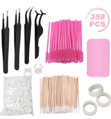 Eyelash Extension Kit, including Stainless Steel Precision Tweezers Set, Disposable Eyelash Mascara Brush Wand, Cotton Swabs