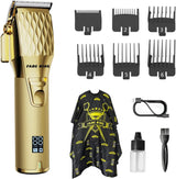 All Metal body Men's Hair Clippers Grooming Kit - This is a complete barber sets for cutting hair, which includes a cape, cleaning brush, and a full range of guard attachments (1.5/3/4.5/6/10/13mm) for different hair lengths (0.5-13.5mm).