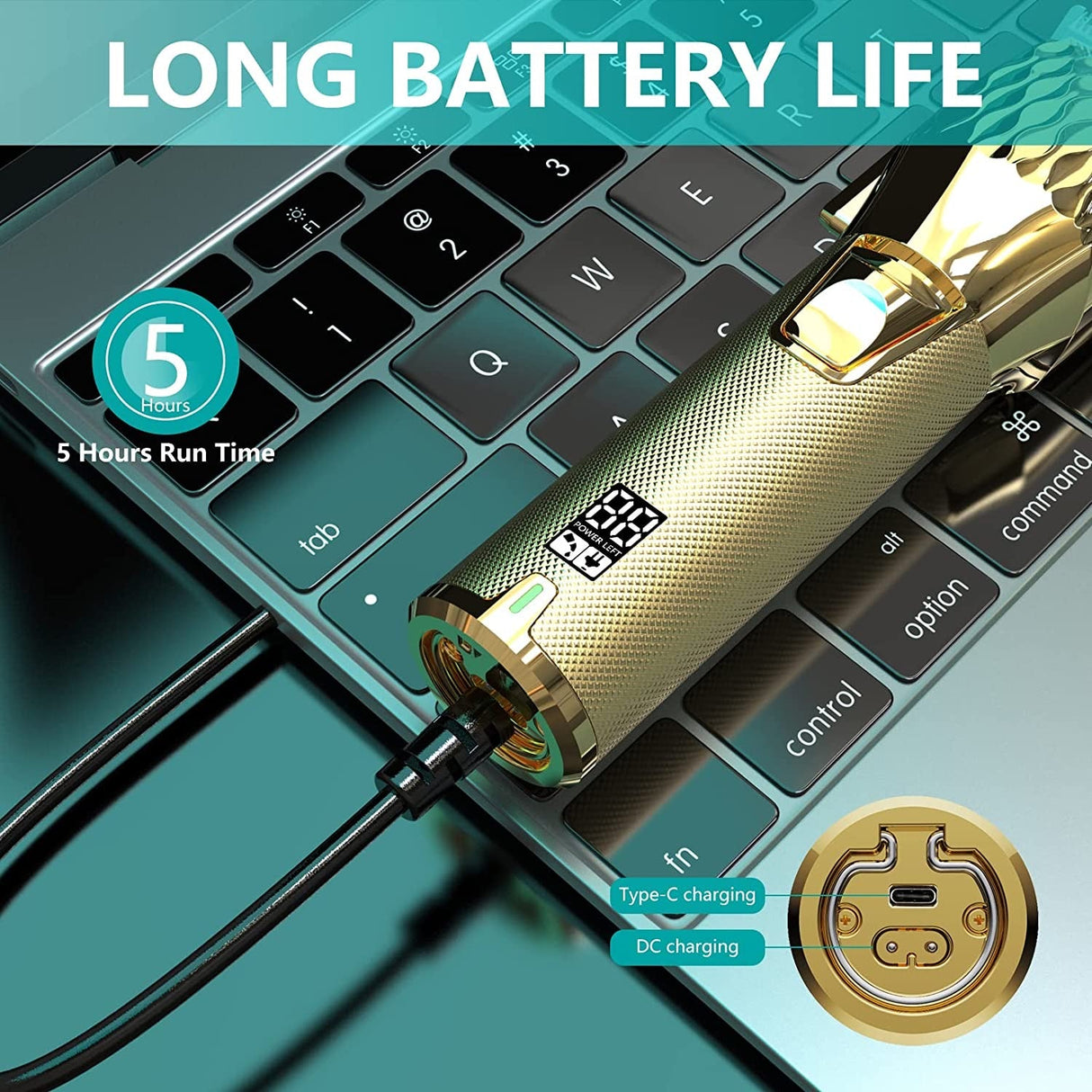 - Wireless, Dual-port Charging,5V DC and Type-C: Our wireless hair clippers for men can be with cord or cordless which is super convenient for self-cutting. Universal charging - One full charge gives you up to 5 hours and half of use. Please note an Adapter might be needed (Not Included in the Package).