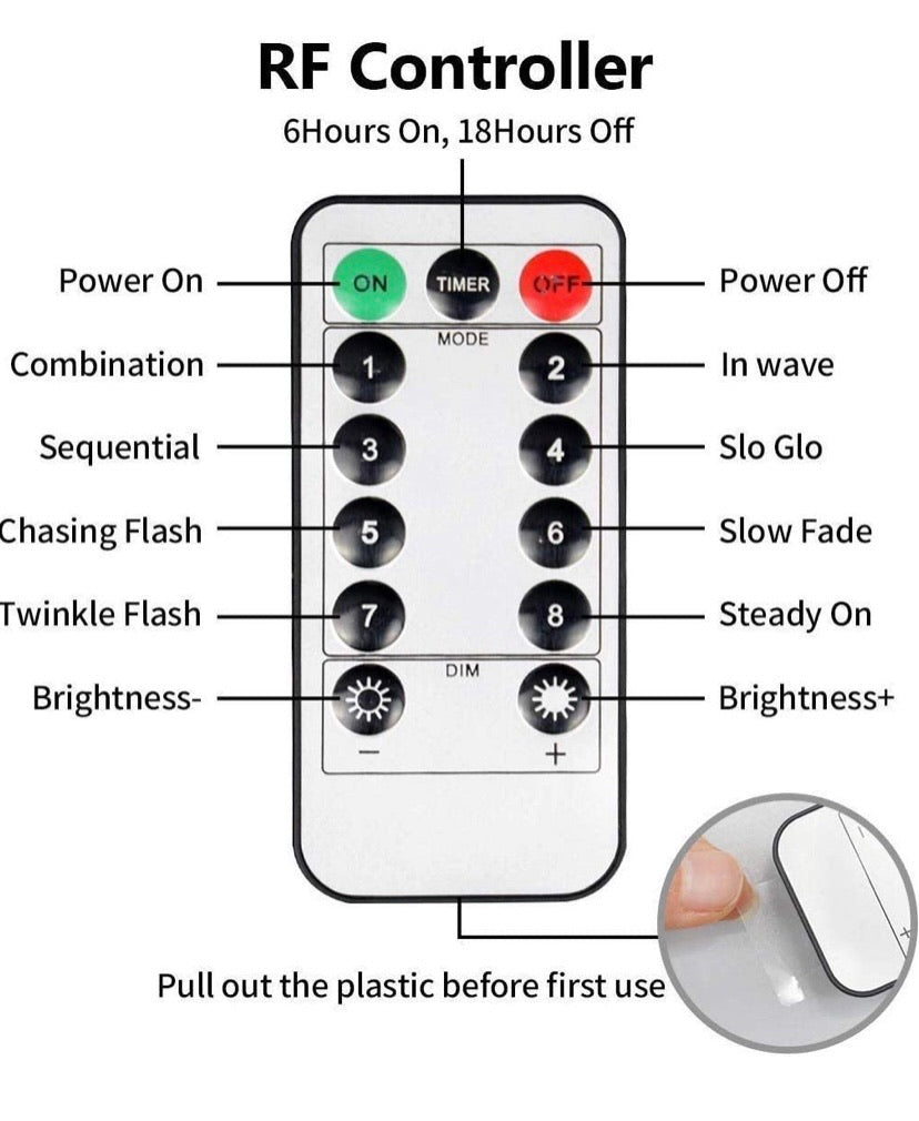 - Remote Control & Timer Setting --- Pressing the controller's Timer button, the warm white wall string lights will keep 6 hours on and 18 hours off automatically once TIMER activated.