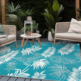 Outdoor Reversible Rug Waterproof Outdoor Patio Rug Plastic Large Floor Mat Lightweight Indoor Outdoor Rug Carpet Plastic Straw Rug for Camping Deck RV Backyard Picnic (Teal) 150x245cm