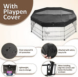 Foldable Metal Pet Playpen with Top Cover, Portable Heavy Duty Wire Exercise Pen for Dogs/ Cats/ Chicks/ Rabbits, Indoor/ Outdoor 8 Panel Pet Fence