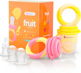 - MOST VALUE FOR MONEY BABY FRUIT / FOOD FEEDERS & TEETHERS (2 PCS w 6 Silicone Teats) – NatureBond Baby Fruit Feeders and Teethers are designed in candy-like colors that stimulate baby’s appetite for consumption of natural nutrients from fruits and vegetables. It is also a safe way to introduce our little ones to solid food while they go through the weaning and teething phase. The All-IN-1 feeder can also soothe a baby's teething discomfort by massaging the gums through chewing.