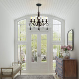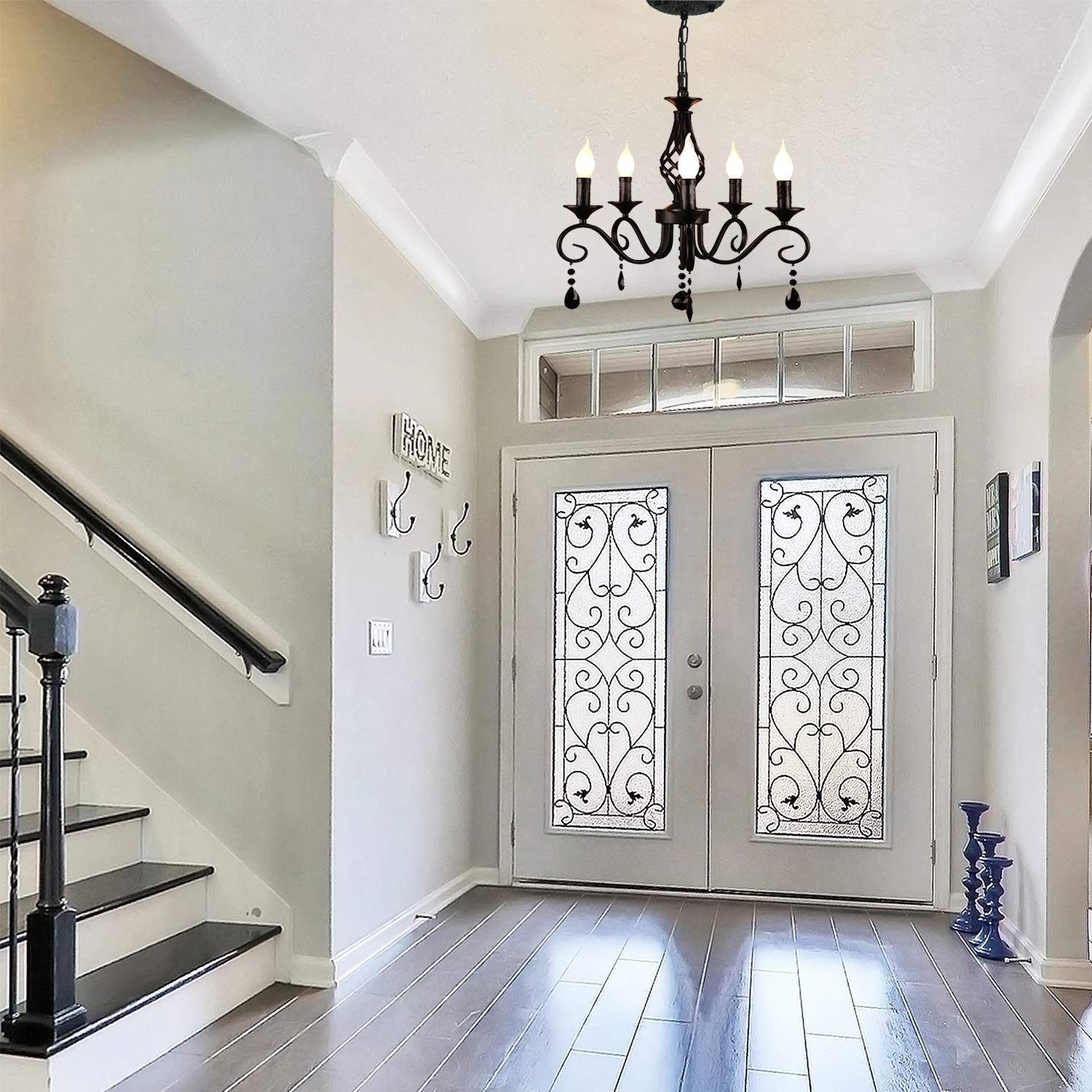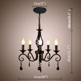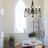French Country Chandeliers, 5 Lights Black Crystal Candle Chandelier, Industrial Vintage Pendant Light Fixture Hanging Light for Island Kitchen Dining Room Farmhouse