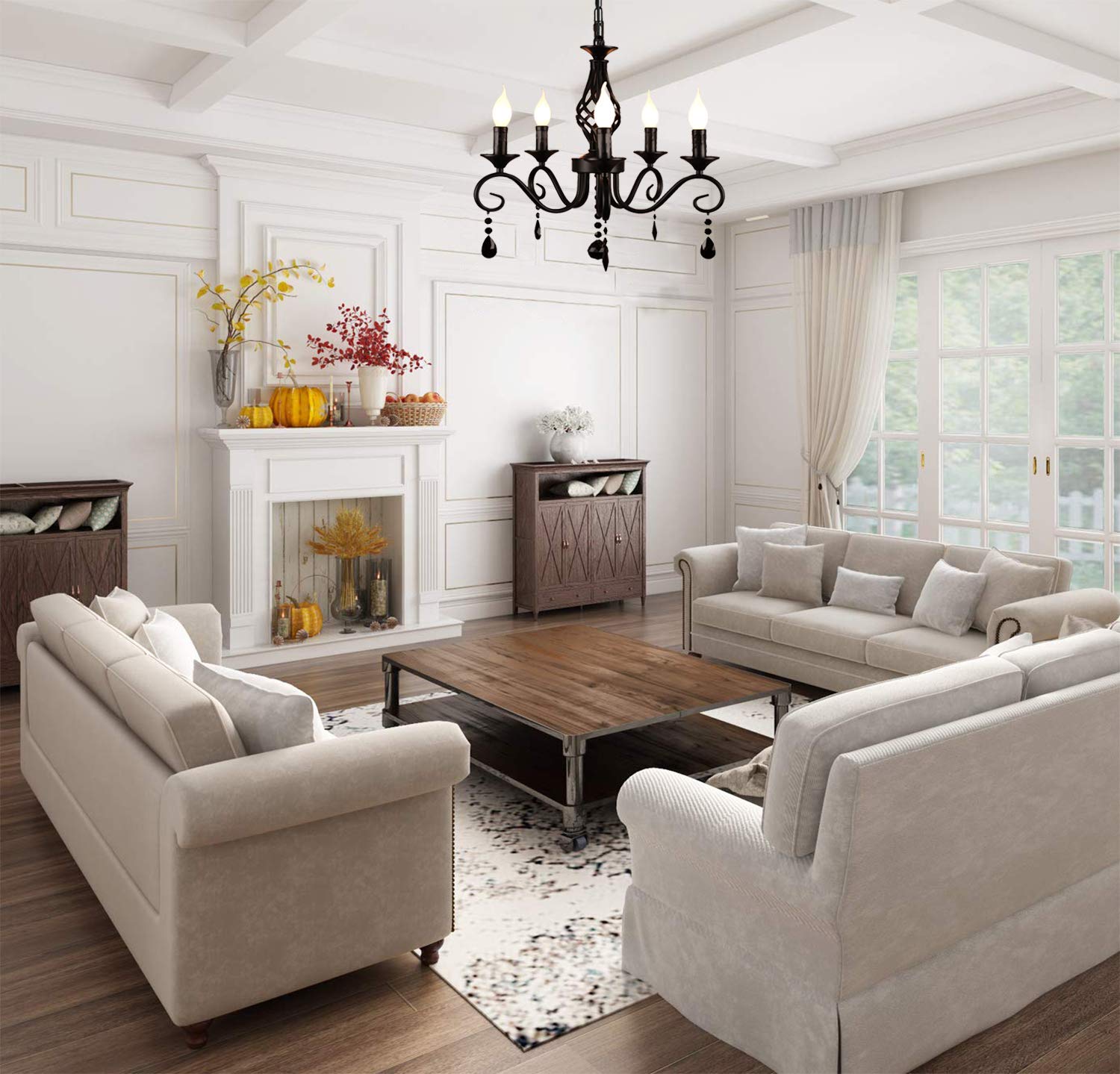 French Country Chandeliers, 5 Lights Black Crystal Candle Chandelier, Industrial Vintage Pendant Light Fixture Hanging Light for Island Kitchen Dining Room Farmhouse is backordered and will ship as soon as it is back in stock.