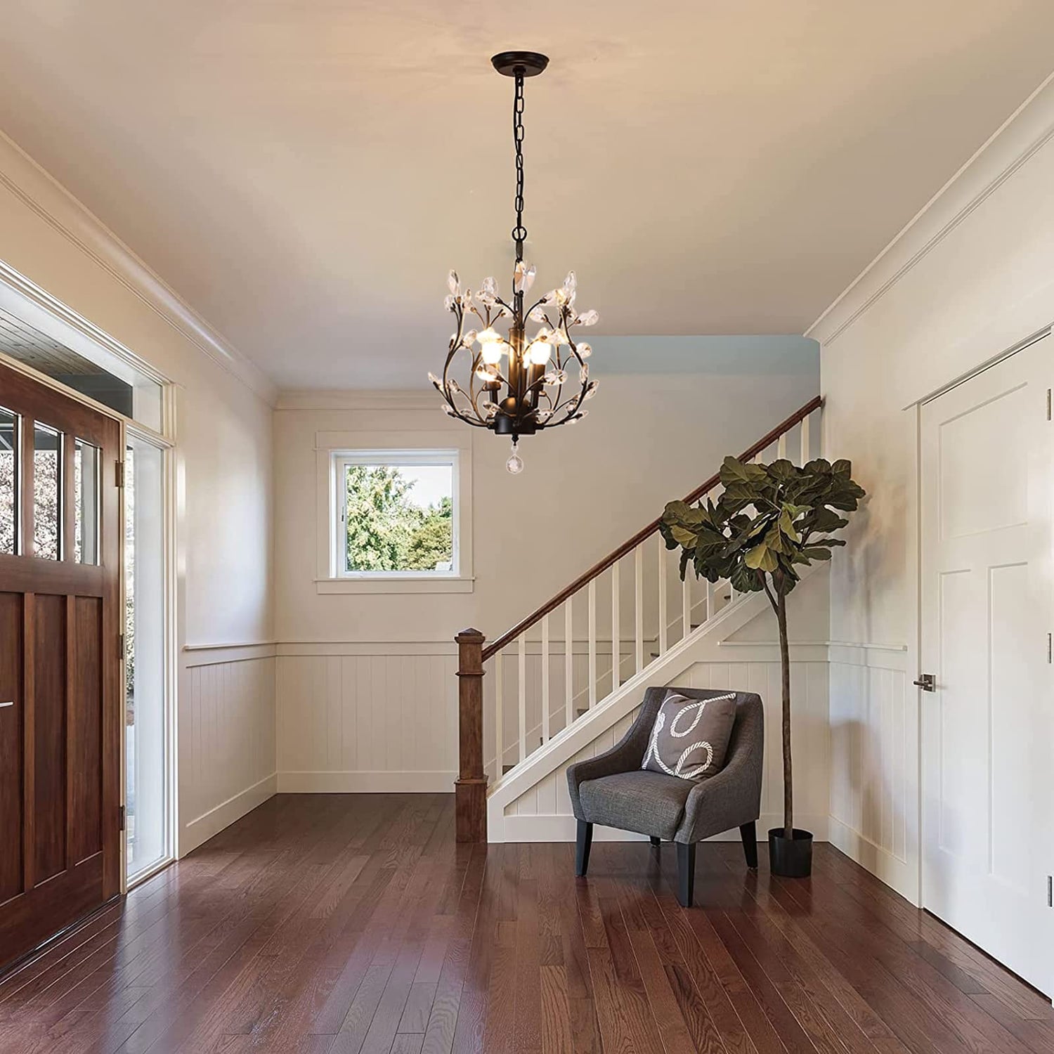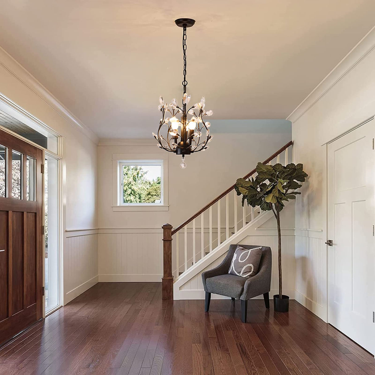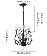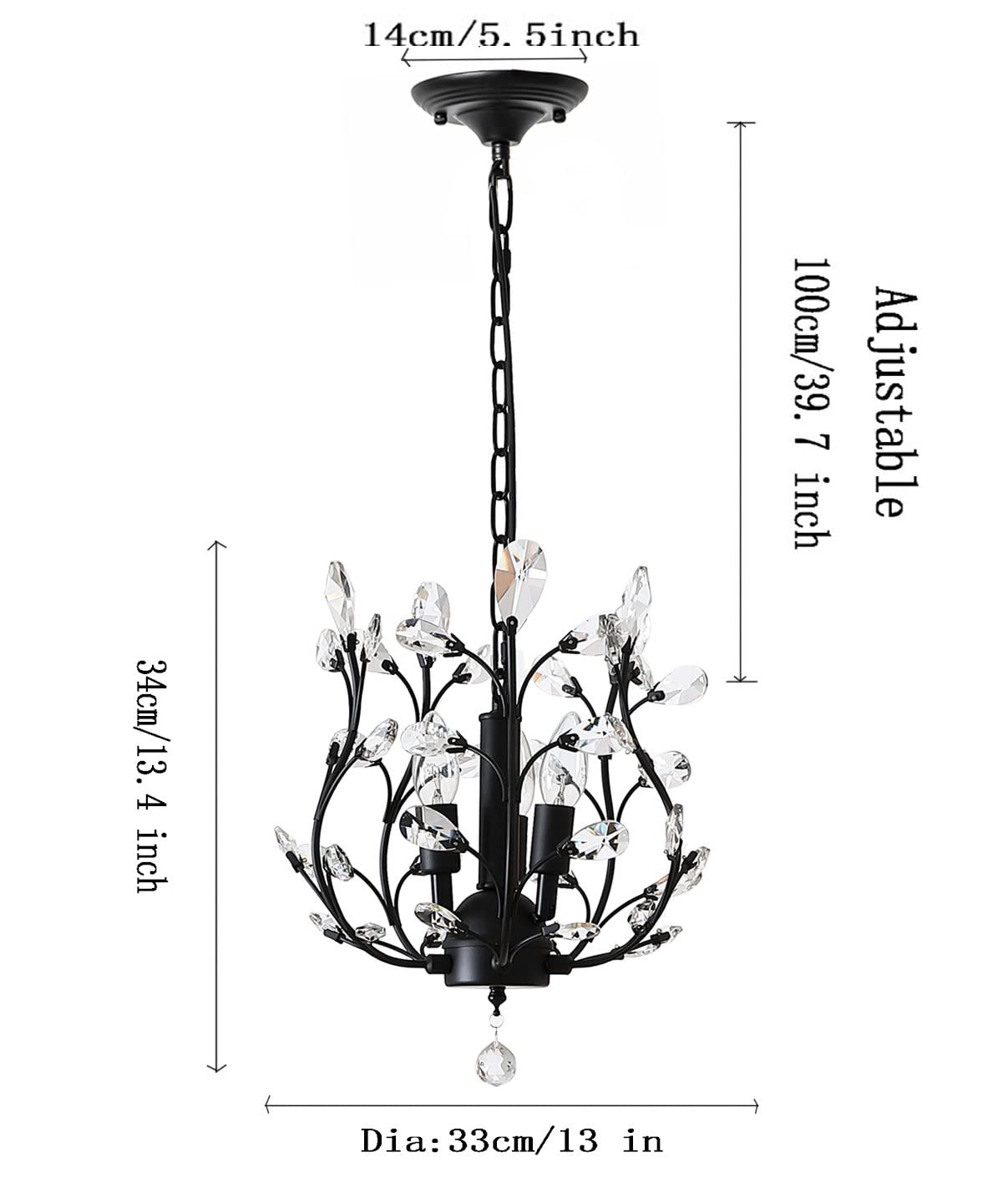 - ARTIST DESIGN: Black crystal chandelier use 5 branches with a crystal design to increase the line sense of the fixture, beautiful shape, and strong artistic design give you a unique choice, use transparent glass crystals to capture and reflect the light of the bulb.Black, Gold two colors optional. sparking and stunning crystal to create a warm and soft atmosphere.