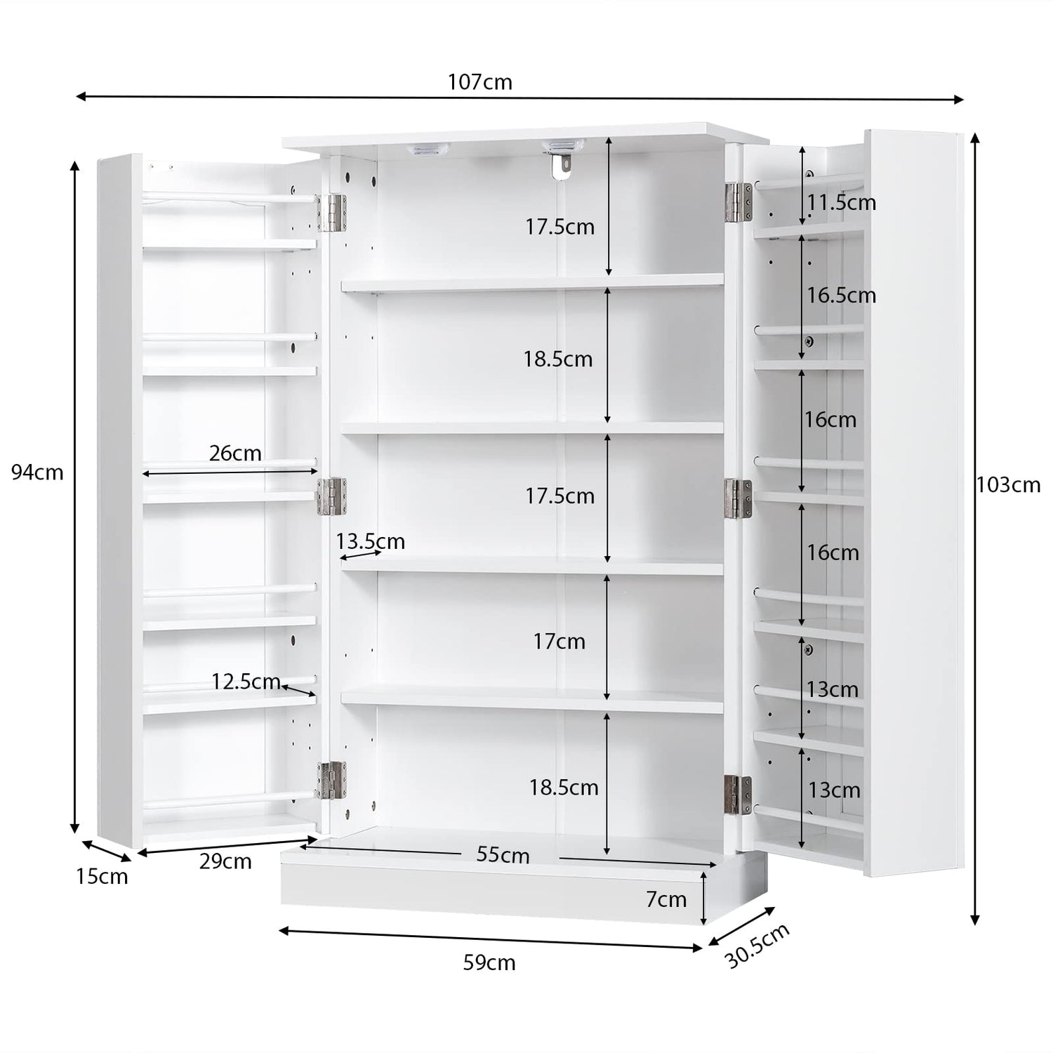- Versatile Pantry Cabinet: Measuring of 59cm x 30.5cm x 103cm, the organization cabinet is applicable to almost any rooms. You can place the floor cabinet in living room, dining room, entryway, etc, for a functional storage option. According to the actual situation, different items, such as tableware, drinks, foods, etc, can be stored inside.