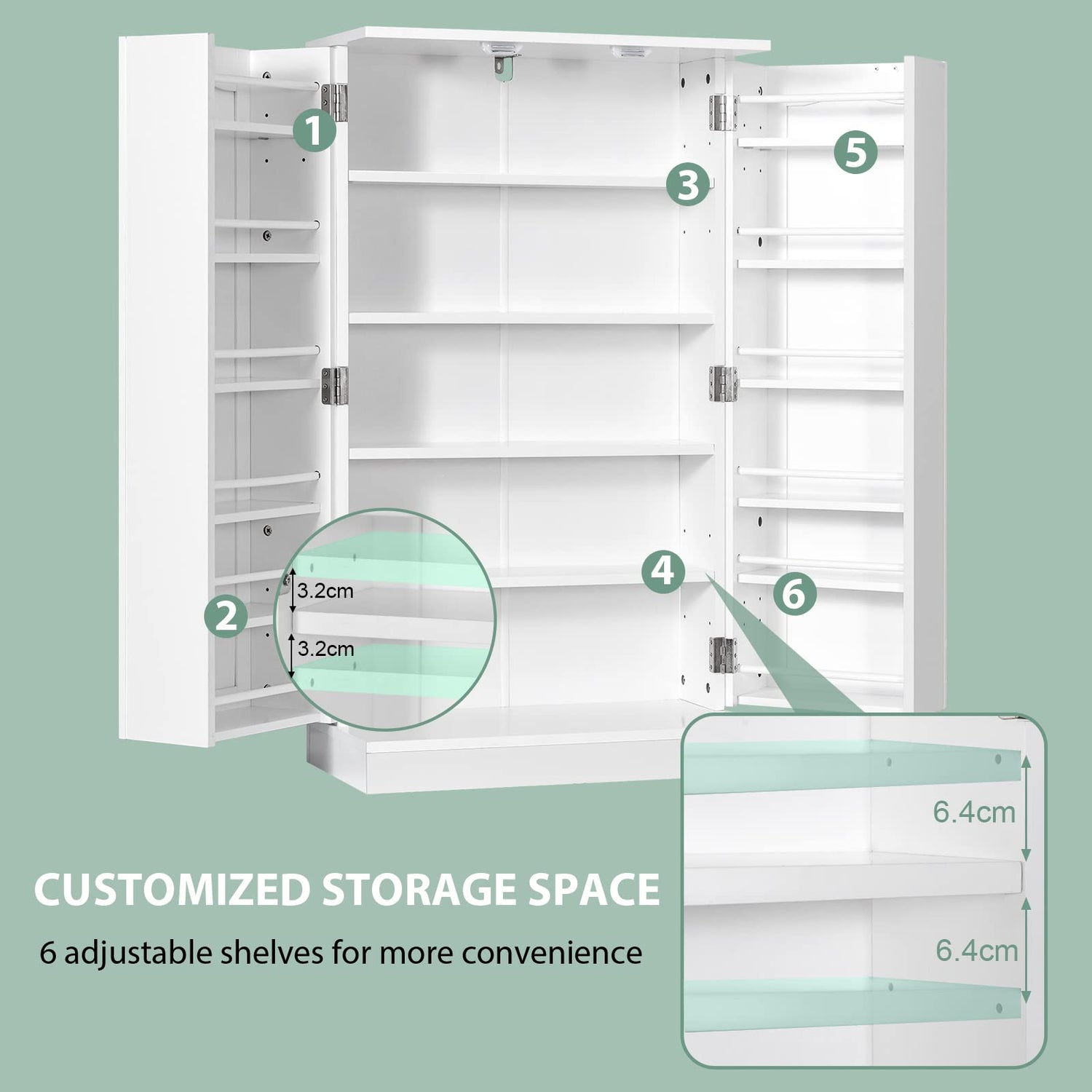 2-Door Pantry Cabinet w/ 6 Adjustable Shelves, 17-Tier Buffet Sideboard, Kitchen Storage Cabinet, Space-Saving Cupboard for Dining Room, Living Room & Entryway, White