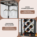 Holders to hold up to 12 wine glasses and wine rack for 8 bottles of wine