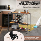 - Sturdy Construction: This mobile wine rack table is constructed from a heavy-duty metal frame. With boards of good quality, this rolling wine cabinet provides strong support and is not easy to bend or break, which can serve you for a long time. Besides, the side bars prevent items from dropping.