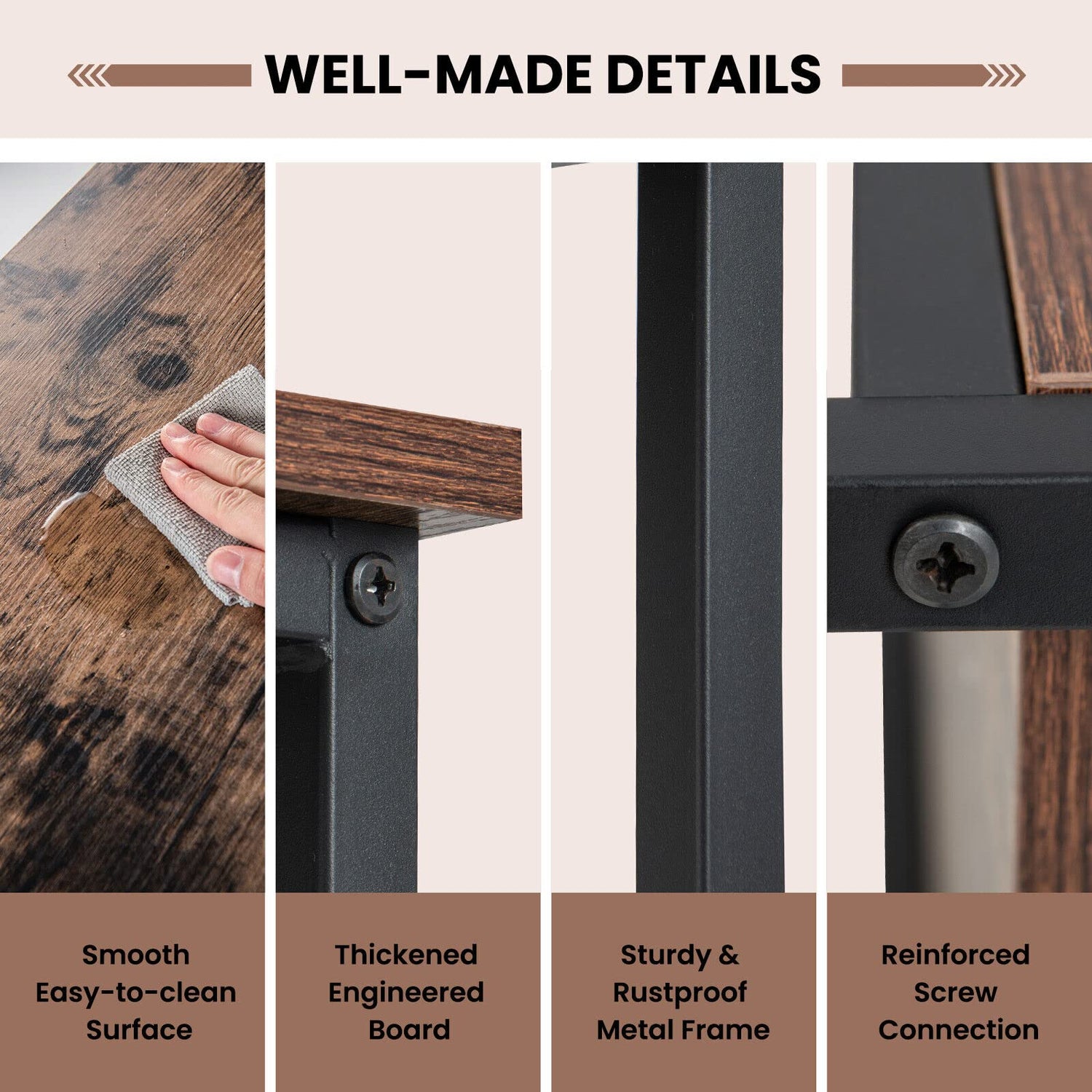 Heavy-duty metal frame offers sturdy structure and strong support