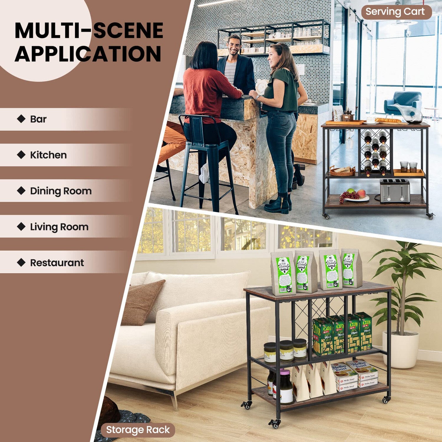 Industrial bar serving cart, your functional storage and home decoration!
