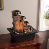 Home Décor Imitation 3-Tier Stone Wall Tabletop Fountain Many Natural River Rock Office Relaxing Waterfall Meditation Tabletop Fountain LED Lights Fountain
