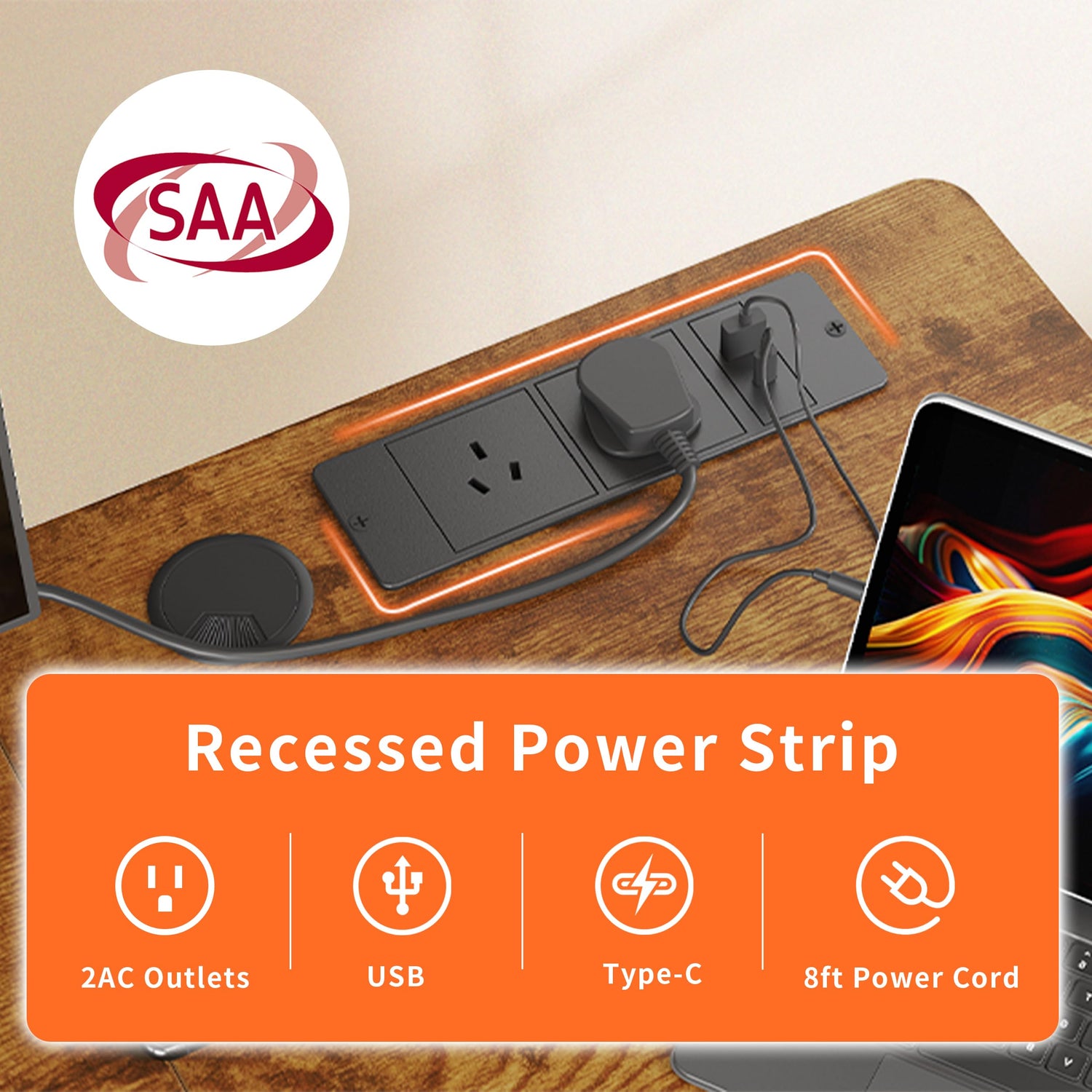 - Daily Convenience: Equipped with hooks on each side and two cable management holes, this desk is perfect for everyday use. It also comes with 2 power sockets, 1 USB, and 1 Type-C charging port, allowing you to charge your devices while working or gaming.